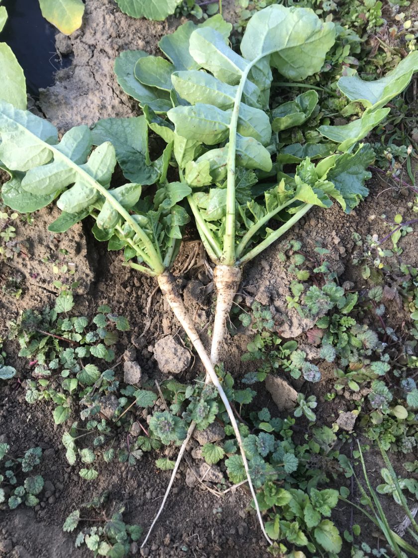 葉が柔らかそうに成長。もう少し成長したら、葉大根で出せそうです。