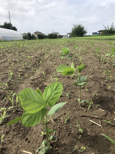 大豆の経過。 大豆の経過。 里のほほえみは、散々な結果になってしまった。播種後の雨続きが影響した。 借金なし大豆は、良い感じ。里のほほえみと同日に蒔いたのに、しっかりと成長。鮮やかな葉が健康具合を表している。風になびくと、美しい。 里のほほえみがこんな感じになってしまったので、今年の大豆は少なくなってしまうなー。残念。 良いこともあれば、悪いこともある。 Share: Twitter Facebook Google+