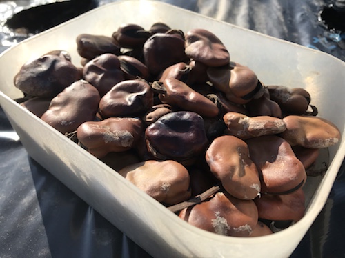 昨日はスナップえんどう、今日はそら豆の種を蒔く。来年のゴールデンウィークあたりに収穫をする予定。半年以上先の実りを思い浮かべる。緑色の葉を広げた隙間から、たわわに垂れ下がる鞘を想像しています。