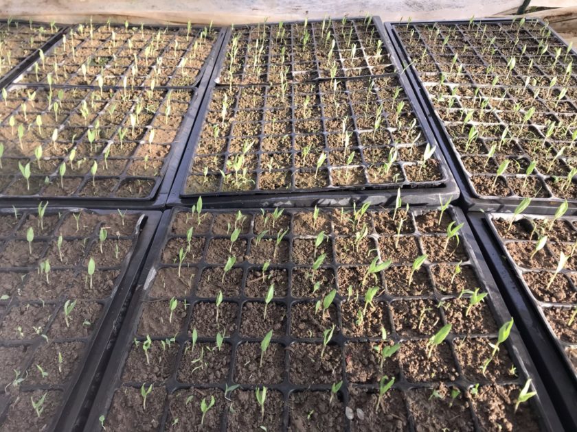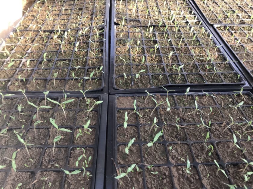 これからこの数の苗を鉢上げする必要があります。鉢上げとは、小さな苗をポット(黒ビニールの鉢)に移植する作業のこと。