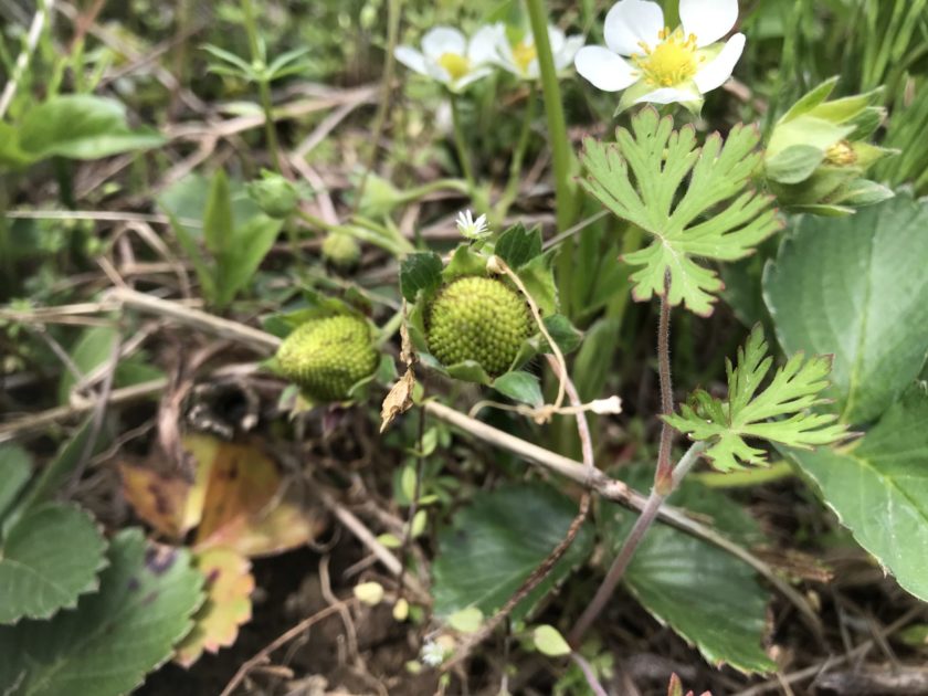 放ったらかし栽培のイチゴがイチゴっぽい形になってきました。