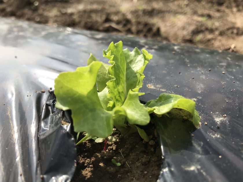 定植したリーフレタスがちょっとだけ成長しました。写真では伝わりにくいかもしれませんが、緑色が最高に美しい。