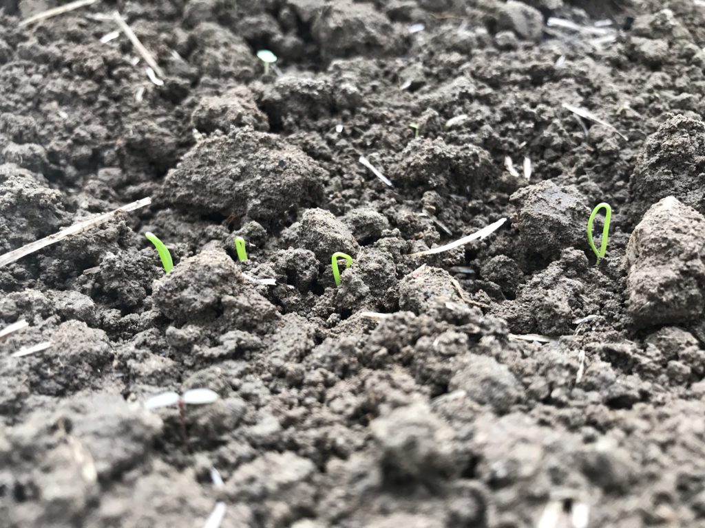 雨のタイミング良く、播種ができ、無事発芽していることで、ひと安心です。