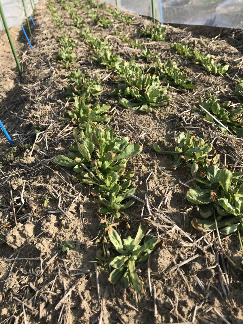 霜で葉を痛めてしまった春菊ですが、トンネルを掛けてやり、数日経ちました。