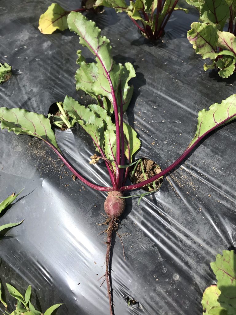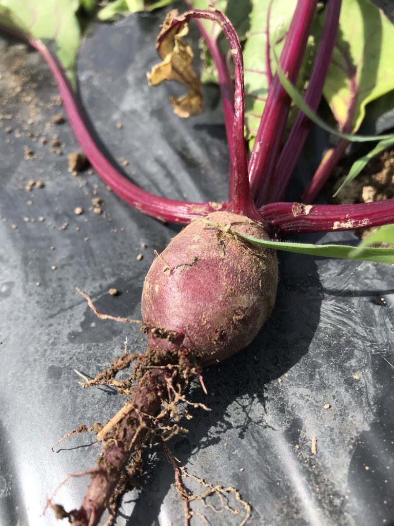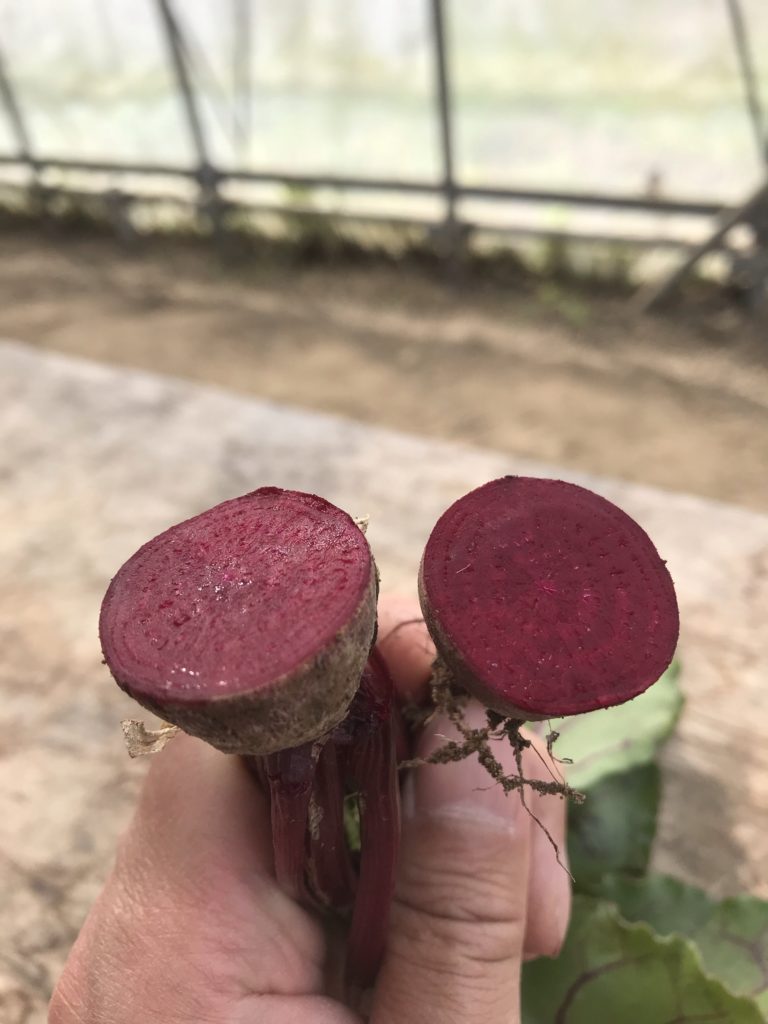 自然栽培ビーツの勉強栽培。 ・勉強栽培のビーツ 緑の葉に真っ赤な葉脈が延びるビーツの地上部。晴れ空に美しい佇まい。 勉強栽培として、少量ですが育てています。 直径2cm程度、真っ赤になっています。めっちゃ甘い。 えぐみのない甘さ。 良い感じ。ここから急激に大きくなる予想。 3/1播種、直播。 Share: Twitter Facebook Google+