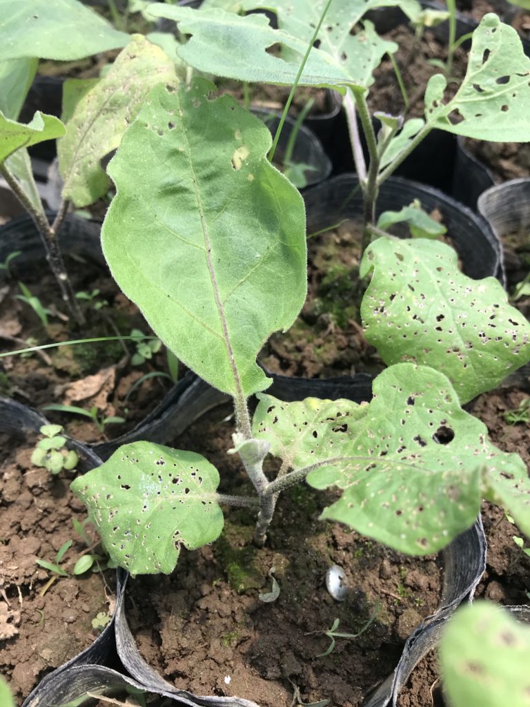 今年は、なぜか苗にアブラムシがついてしまい、やや成長不良で葉が傷んでいる。