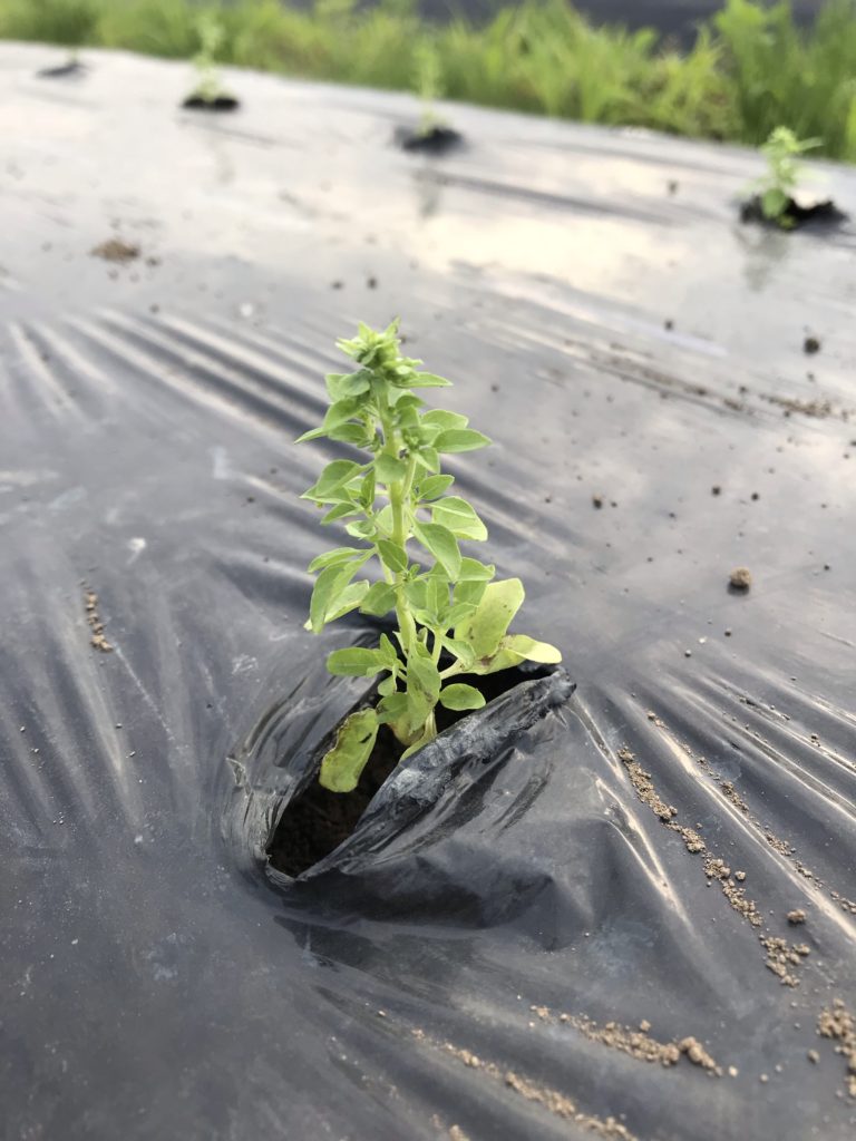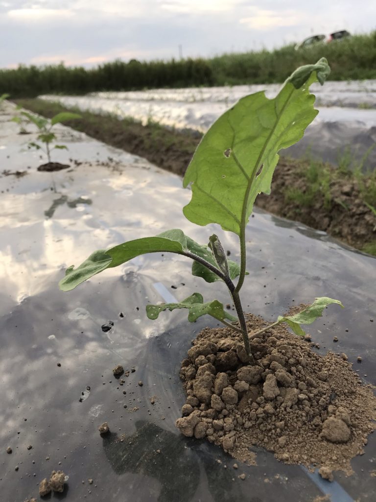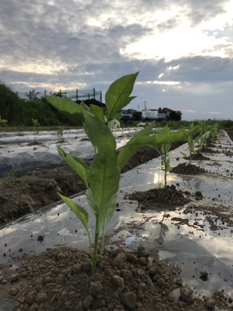 明日は雨になるとのことで、急ピッチで苗の植え付けを行った。
