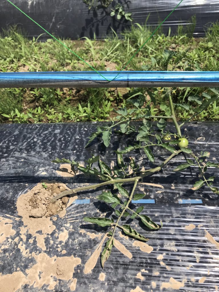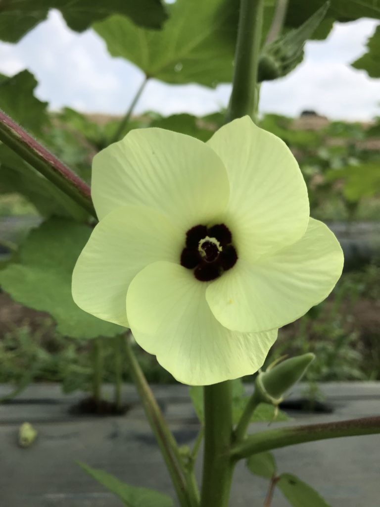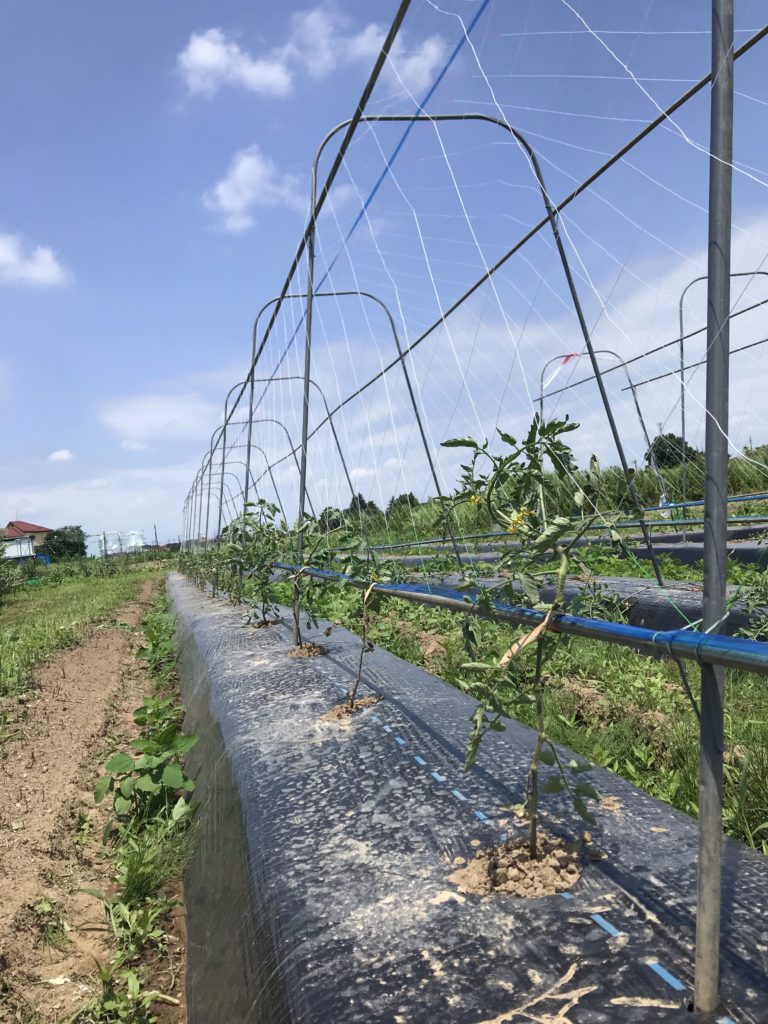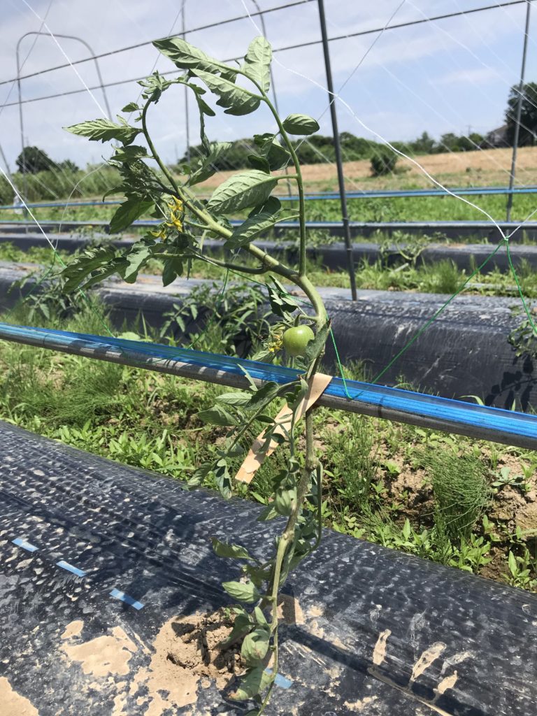 八丈オクラ初物、トマト誘引。 ・八丈オクラ初物、トマト誘引 八丈オクラの初物が採れた。 最初は数本から始まります。 まだ形や硬さが安定していない。しだいに柔らかく甘味のあるオクラになっていきます。 今日、つぼみが沢山開こうとしていたので、来週からは収穫に追われるようになる予定。 暑い夏に、オクラの収穫。松島農園での風物詩。 おととい昨日で設置したネットに、まだ幼いトマト苗を誘引しました。 立ち上がって、整列。美しい。 八丈オクラ、4/23直播。中玉トマト、3/4連結ポット播種。 Share: Twitter Facebook Google+