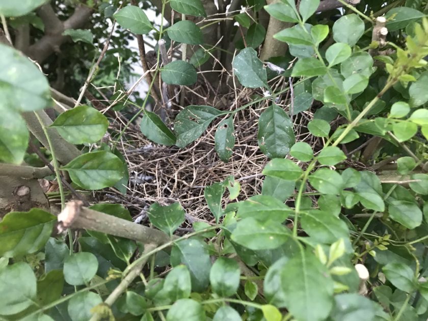 鳩の巣。 朝、巣を覗いてみると、…